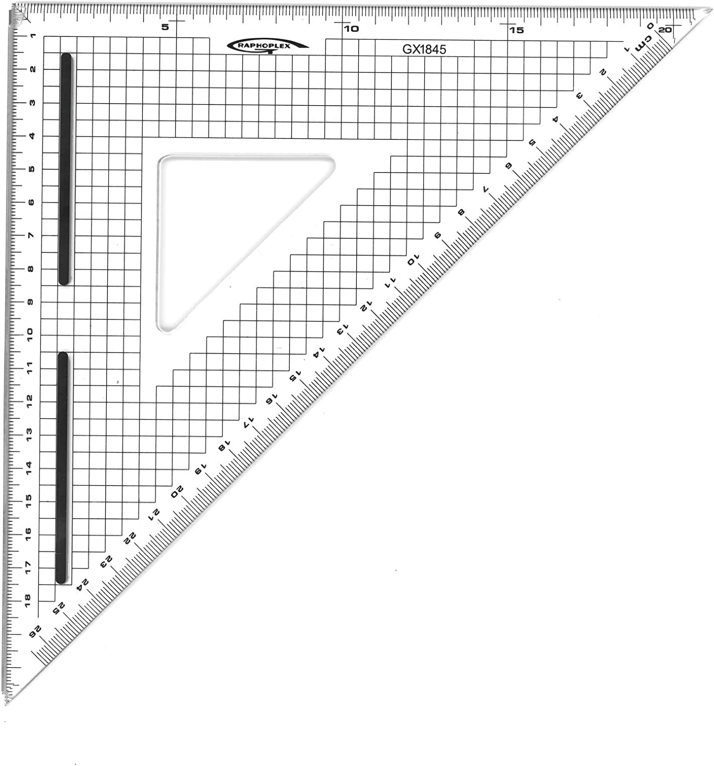 Ъгъл: 45°, размер на хипотенуза: 26 см, размери на страните 21 см.