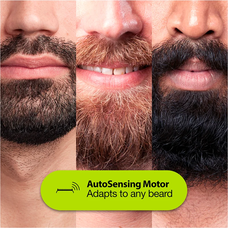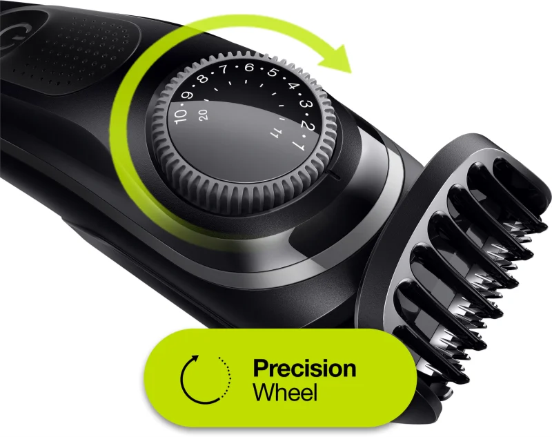 - Адаптивен двигател на тример за брада и машинка за подстригване, както и прецизно колело за 39 настройки на дължината на стъпки от 0,5 mm за гладко изживяване при подстригване