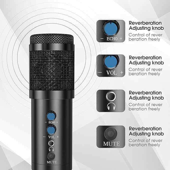 - Широка съвместимост: кондензаторните микрофони осигуряват топъл и богат звук. Чудесни за игри, подкасти, Zoom, стрийминг, Skype чат, озвучаване и др. Подходящи за вашия компютър, лаптоп, Android телефон, смартфон и друго устройство.